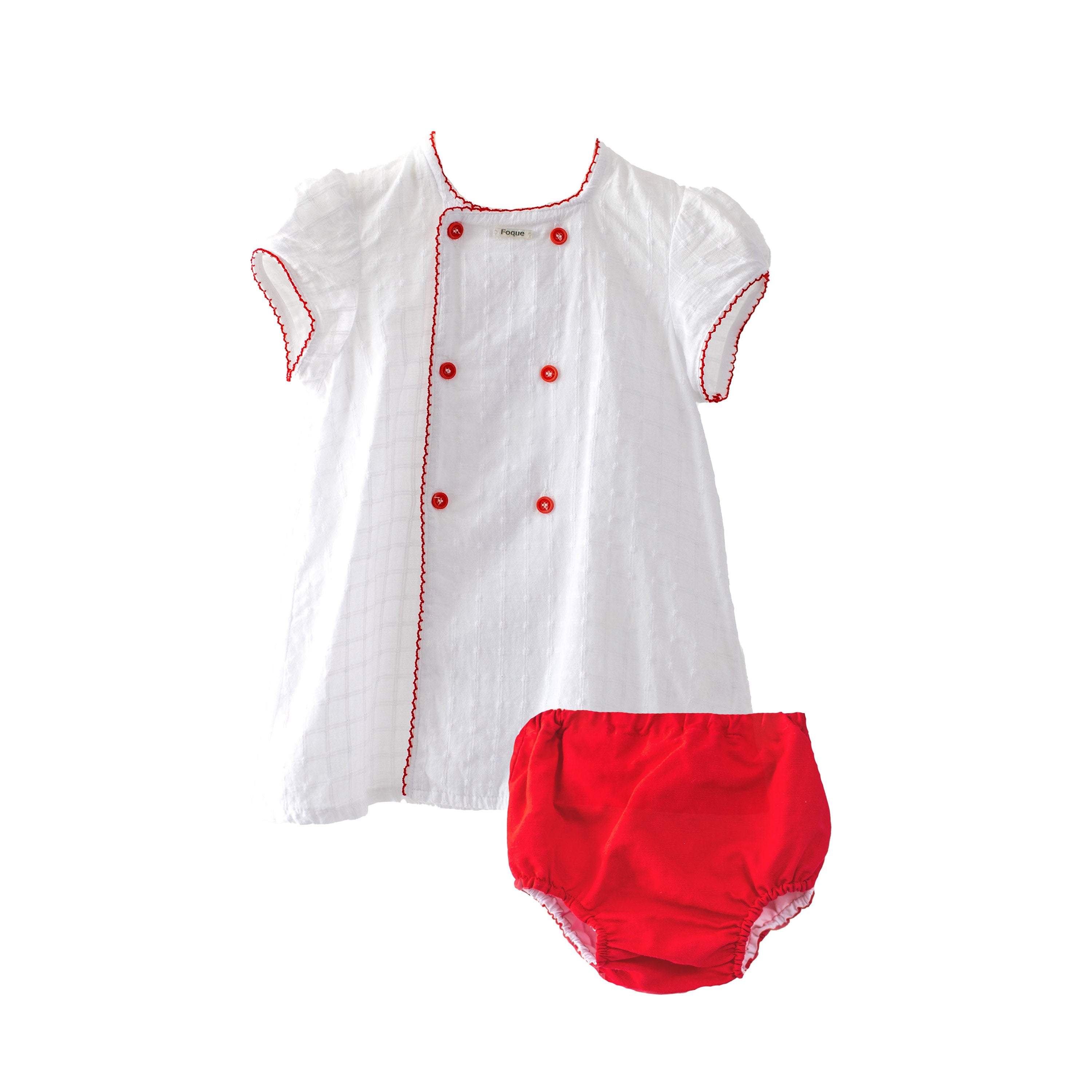 [18-24m] Foque Spain White Dress & Red Bloomer Set