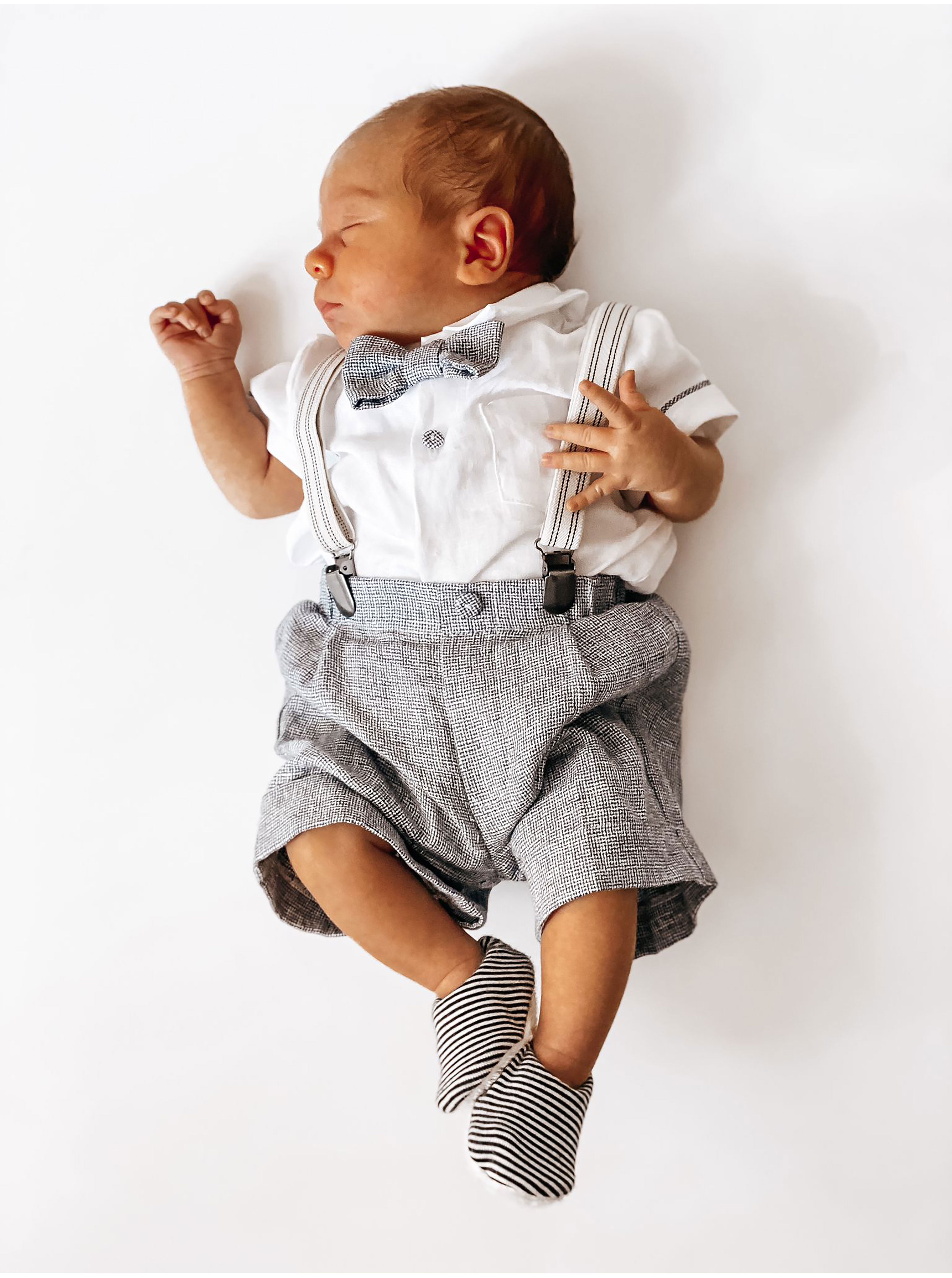 Suitable for babies 2 months and older, this set is perfect for all occasions - from family gatherings to casual outings. The front button fastening makes it easy to dress and undress your little one, while the timeless design ensures it can be worn season after season.