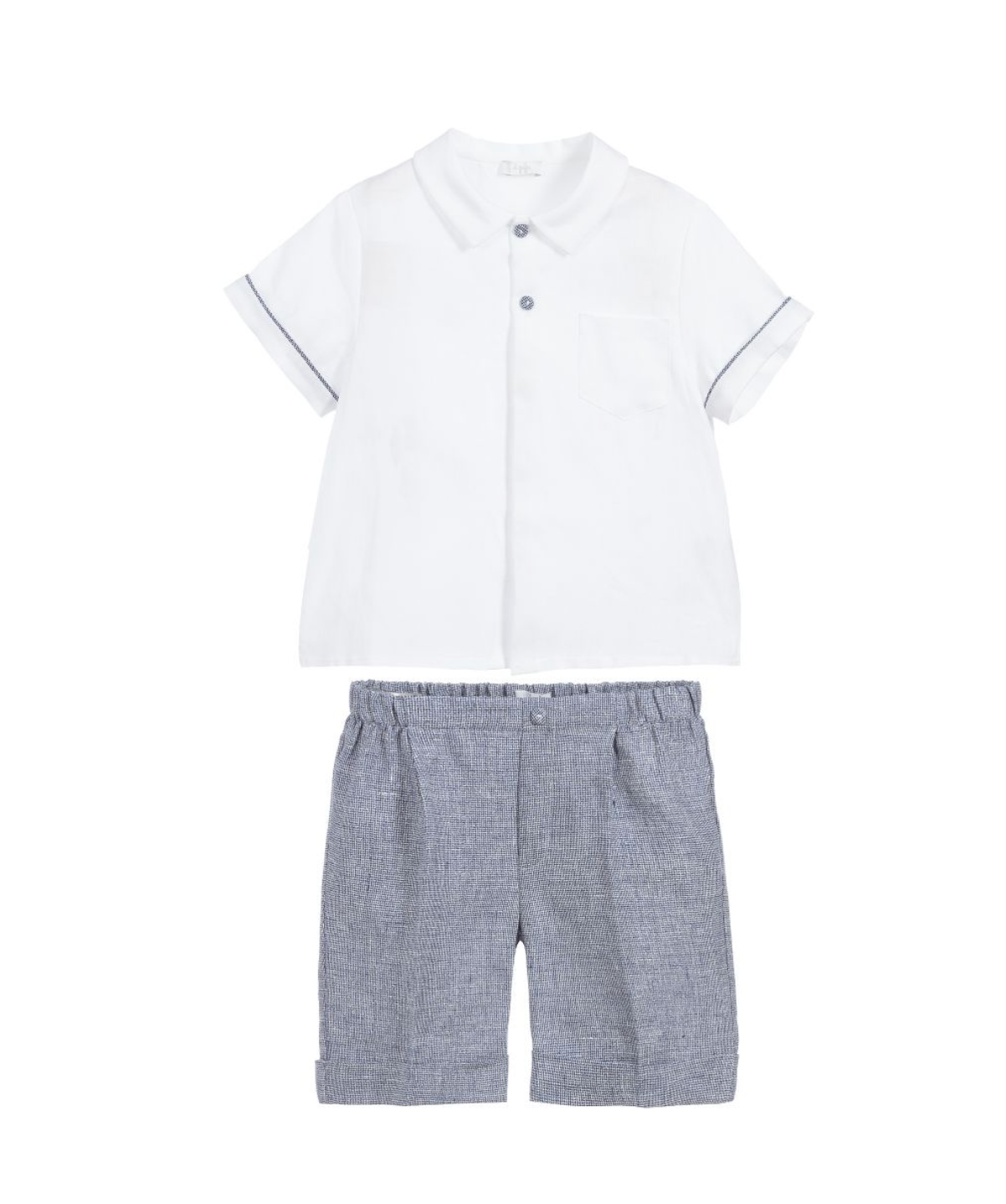The set features a button collar and short sleeves, adding a touch of sophistication to your baby's wardrobe. The pleated waistline and relaxed fit ensure comfort and room for growth, allowing your baby to move and play with ease.