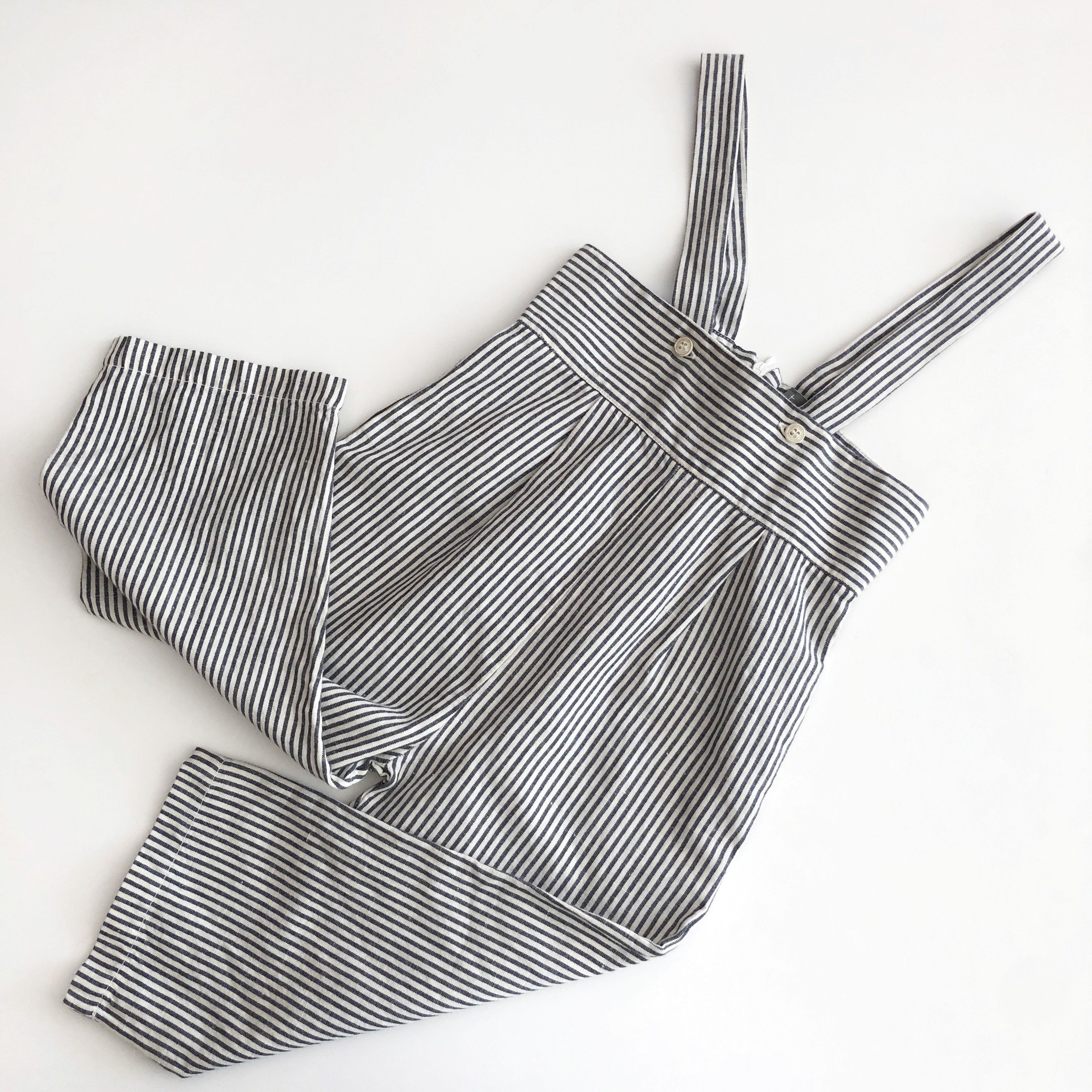 This is one of our favourite EVER - pieces in our collection. We are lucky to have a highly sought after size 4y in these. You can also but it as size larger and grow with the dungaree. We've done this! Best of all, this piece can even be worn as quarter length pant in the Summer or Fall! We've done it all - over a tee, over a sweater - cardigan over it....you name it, this is it! Will be her favourite pant hands down. Tocoto Vintage, created out of a designer's love for her children, the sea, and Formentera Island, features garments with a weathered, dusty aesthetic. Colors of grey, taupe, pink and blue blend together in hoods, lace edgings, and mini jerseys with handmade and vintage effects. The designer sources materials from antique markets, carefully crafting each garment with meticulous attention to detail.